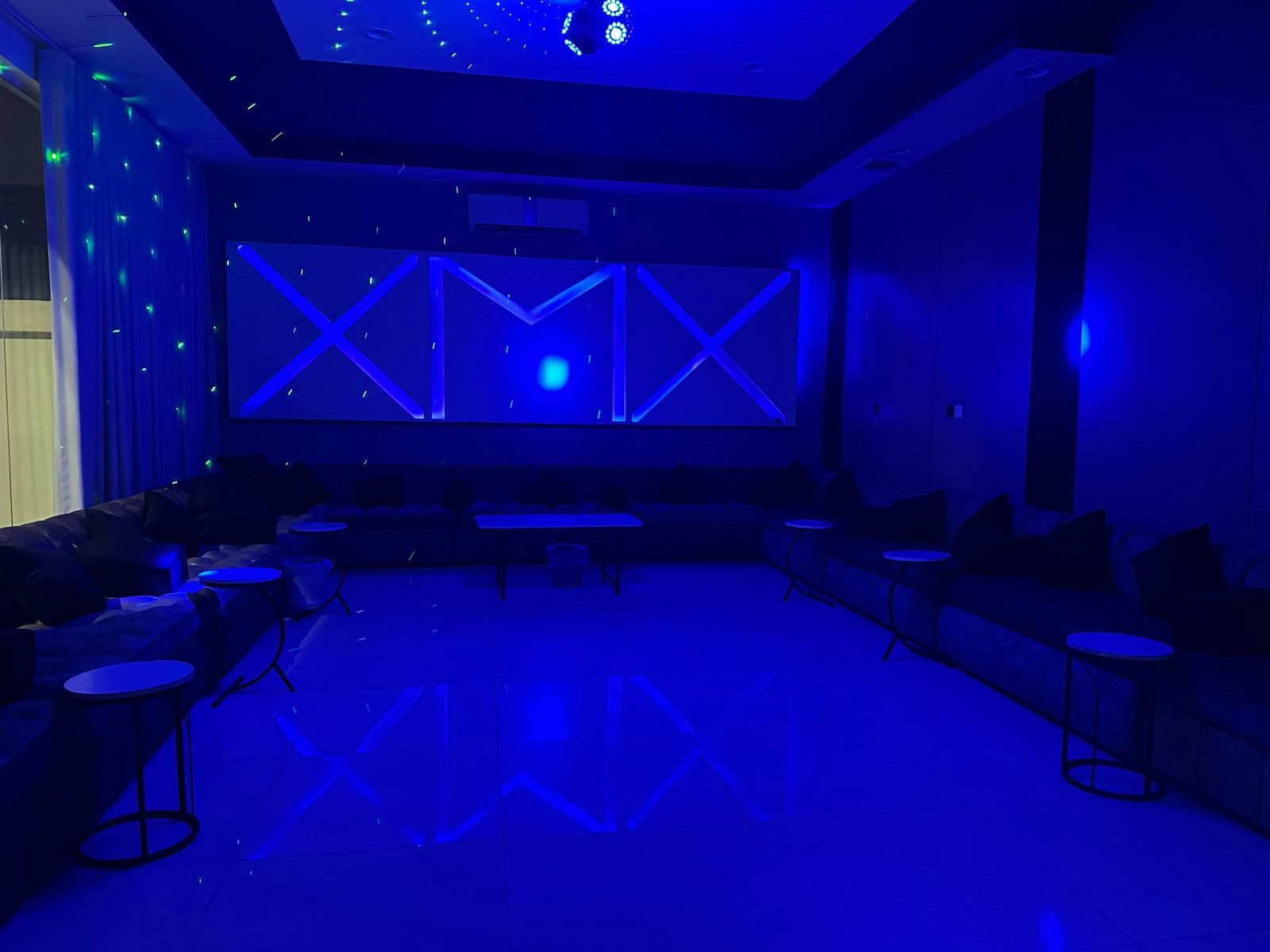 6- صالة 10*6 تتسع من 20 الى 30 شخص مزودة بليازر وسماعة دي جي - لدات -ديكورات مضيئة-دورتين مياة مع المغاسل